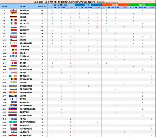 最后,看看各国联赛在三大杯上征战球队的存活情况。
